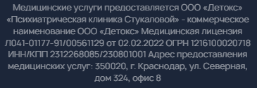 Медицинский центр лечения зависимостей Екатерины Стукаловой в Старомышастовской предлагает избавление от алкогольной и наркотической зависимости. Услуги врача необходимы при получении прав, поступлении в учебные заведения, на службу, а также во время прохождения освидетельствования. Записаться на прием к врачу можно по телефону или на официальном сайте.